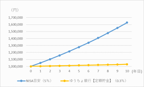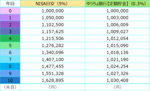 貯金でも長く預けていれば増えるけど、NISAのほうが増えています。